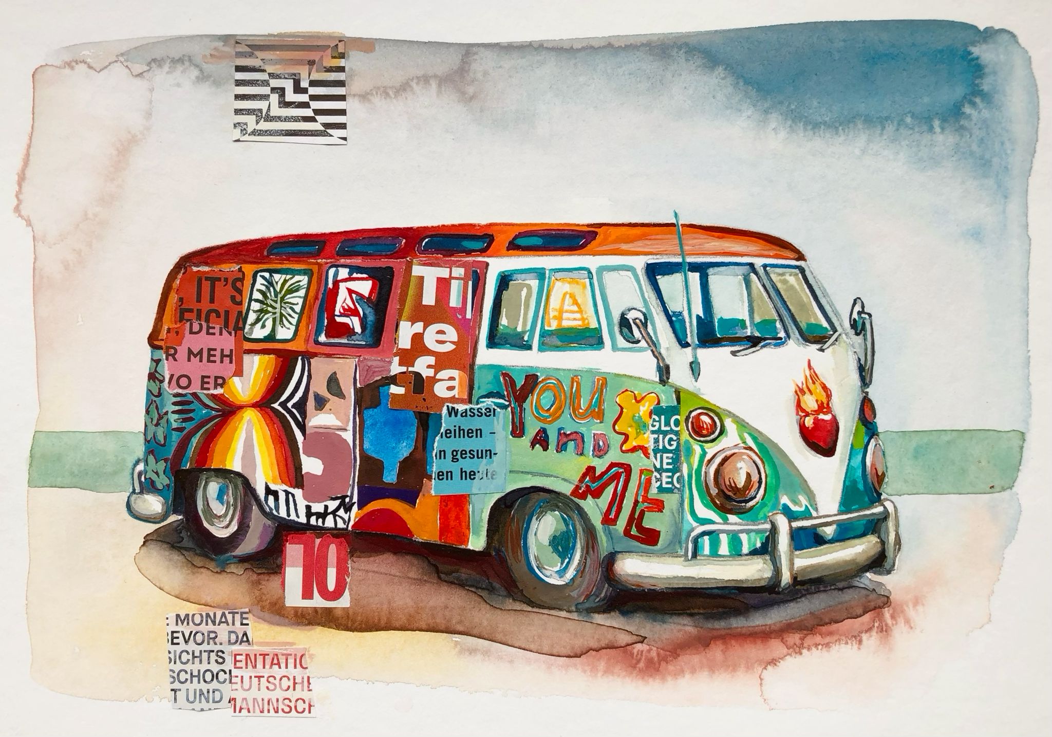 Bulli 4 18 x 24 cm 2025 weiß gerahmt